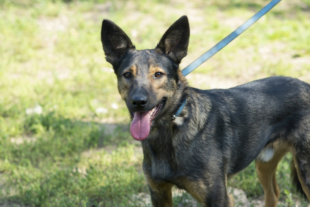 Халёный красавец "овчаристого окраса" со стоячими ушками, гладкошерстный.