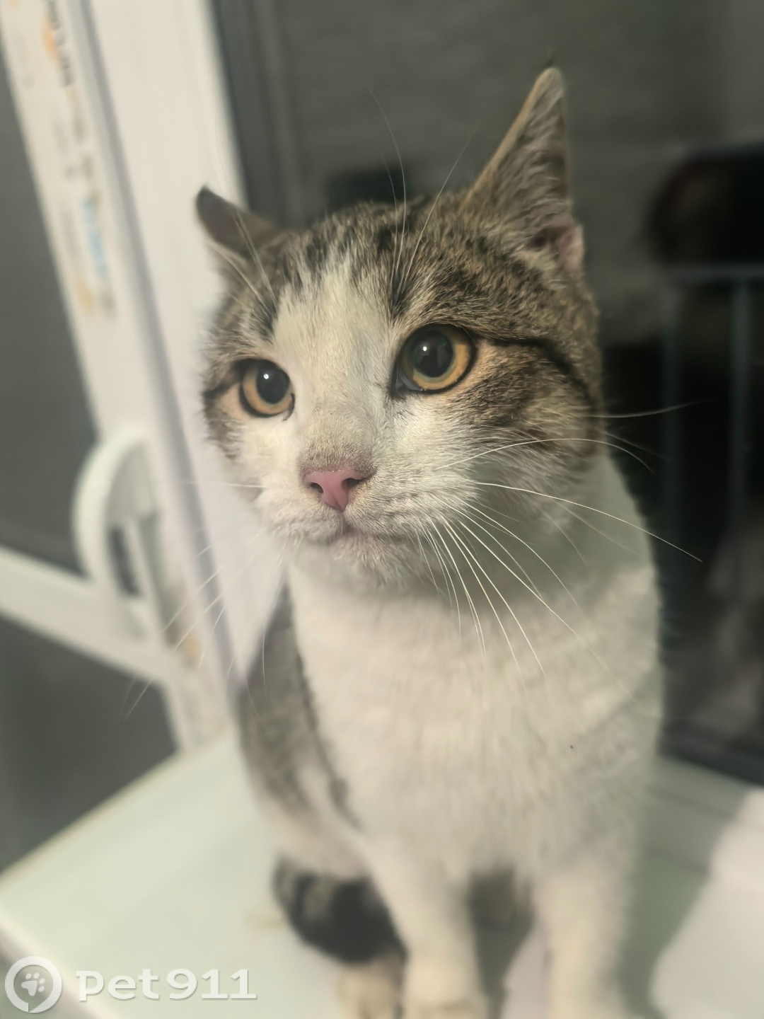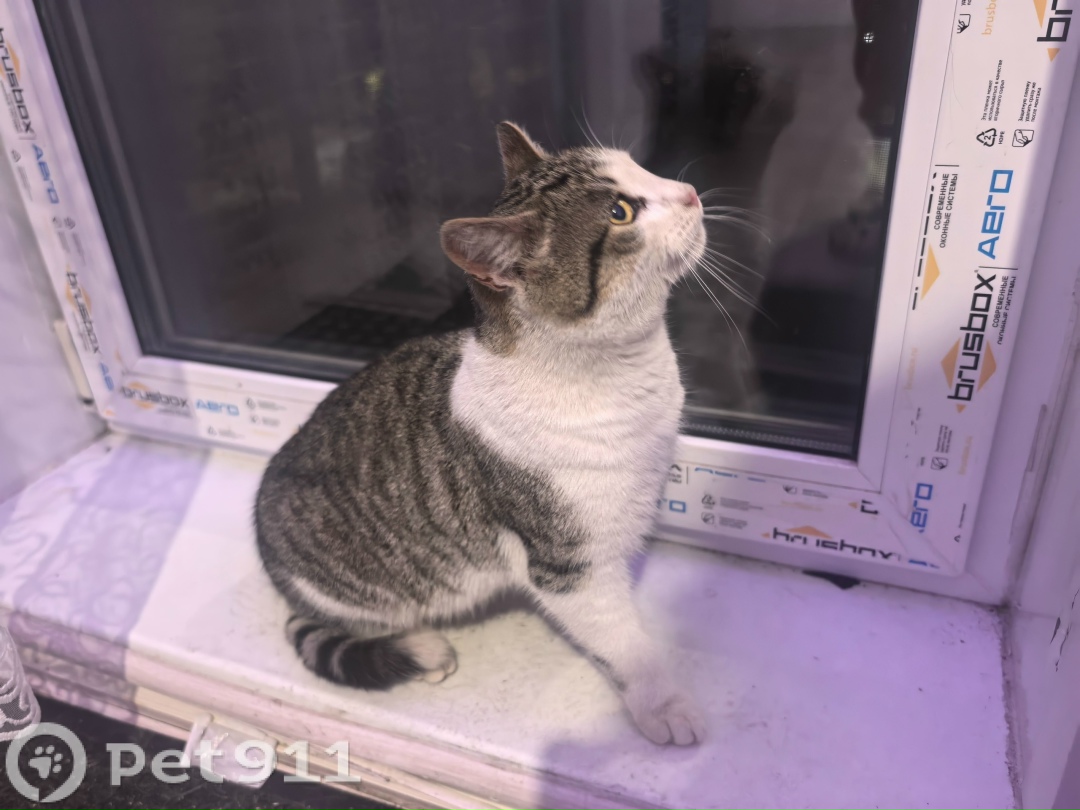 Нашёлся молодой кот в посёлке Рождественский, ночью (примерно в 01:30, уже по календарю 13.12.2025). Ласковый, дружелюбный, попросил о помощи, потому что не мог спрятаться от урагана. Полосатый, белый с серо-коричневым и лёгкой рыжинкой за ушами. Белые грудь и живот, хвост полосатый с белым кончиком. Чистый, без клещей и блох, вероятно чей-то.