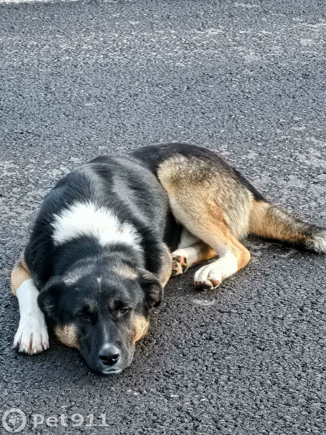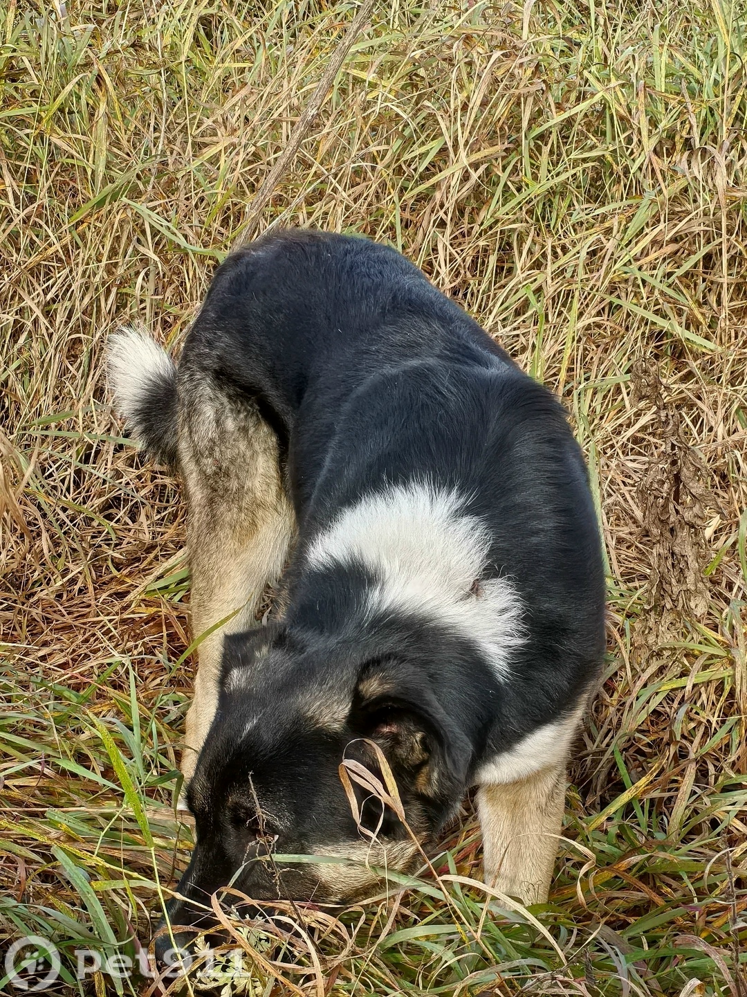 Молодой кабель, чистый и ухоженный, зубки и уши чистые. Окрас черно-коричнево-белый. Очень дружелюбный, на контакт с людьми идет.