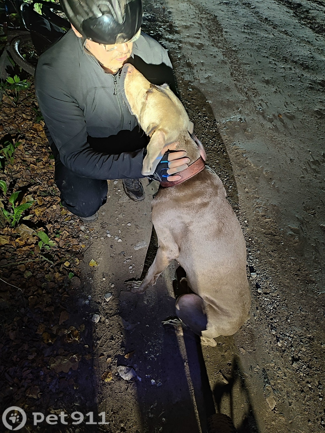 Кобель, возраст 4-6 лет, с коричневым кожанным ошейником, немного хромает