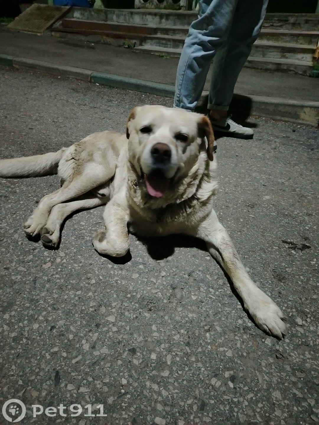Помесь лабрадора, старенький, идёт за всеми кто обратит на него внимания, видно что уже хочет есть и пить. Ему тяжело ходить из-за возраста. Хотели взять на передержку, но к сожалению пока отходили в магазин, он убежал. У него имеется ошейник и на ошейнике карабин, либо отпустили либо сам сбежал. Надеемся на то что новый либо старый хозяин найдётся!