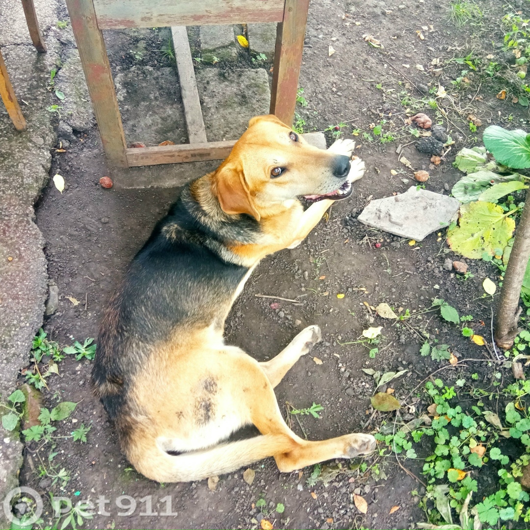 Окрас черно песочно рыжий, молодой, без ошейника, вес примерно 30 кг, неплохо ходит на поводке. Прибился и живёт на веранде дачи. Пёдобродушнвйдоброчеловекоориетированный