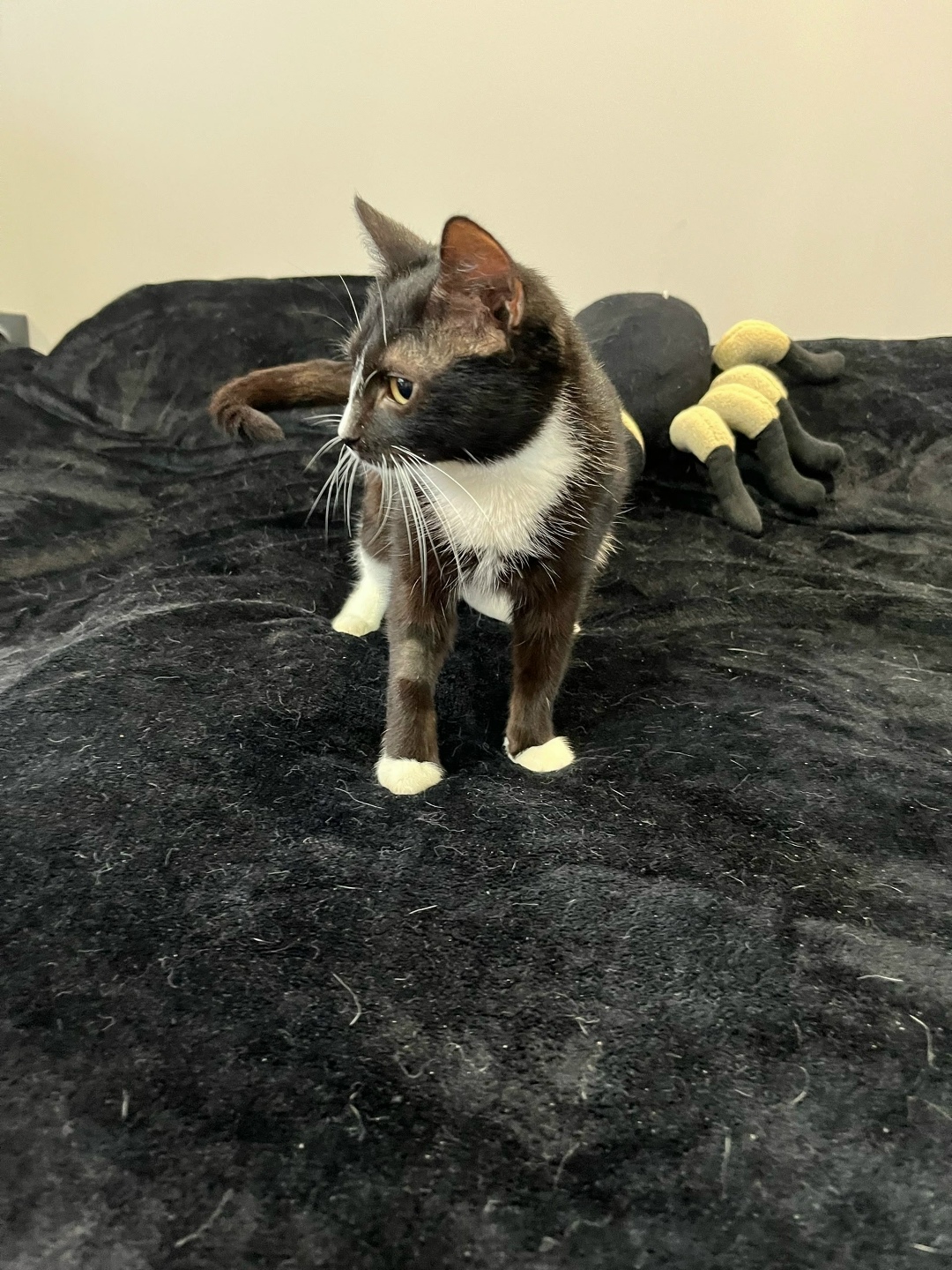 Перед вами не просто кошечка. Соня — это воин, который прошел через многое и не разучился доверять. Это — нежность, которая знает, как ценить тепло и ласку. Она обожает сидеть на коленях, мурлыкать песни и провожать вас нежным взглядом. Она уже прошла свой самый большой страх и теперь мечтает только об одном: о своем человеке и тихом доме.