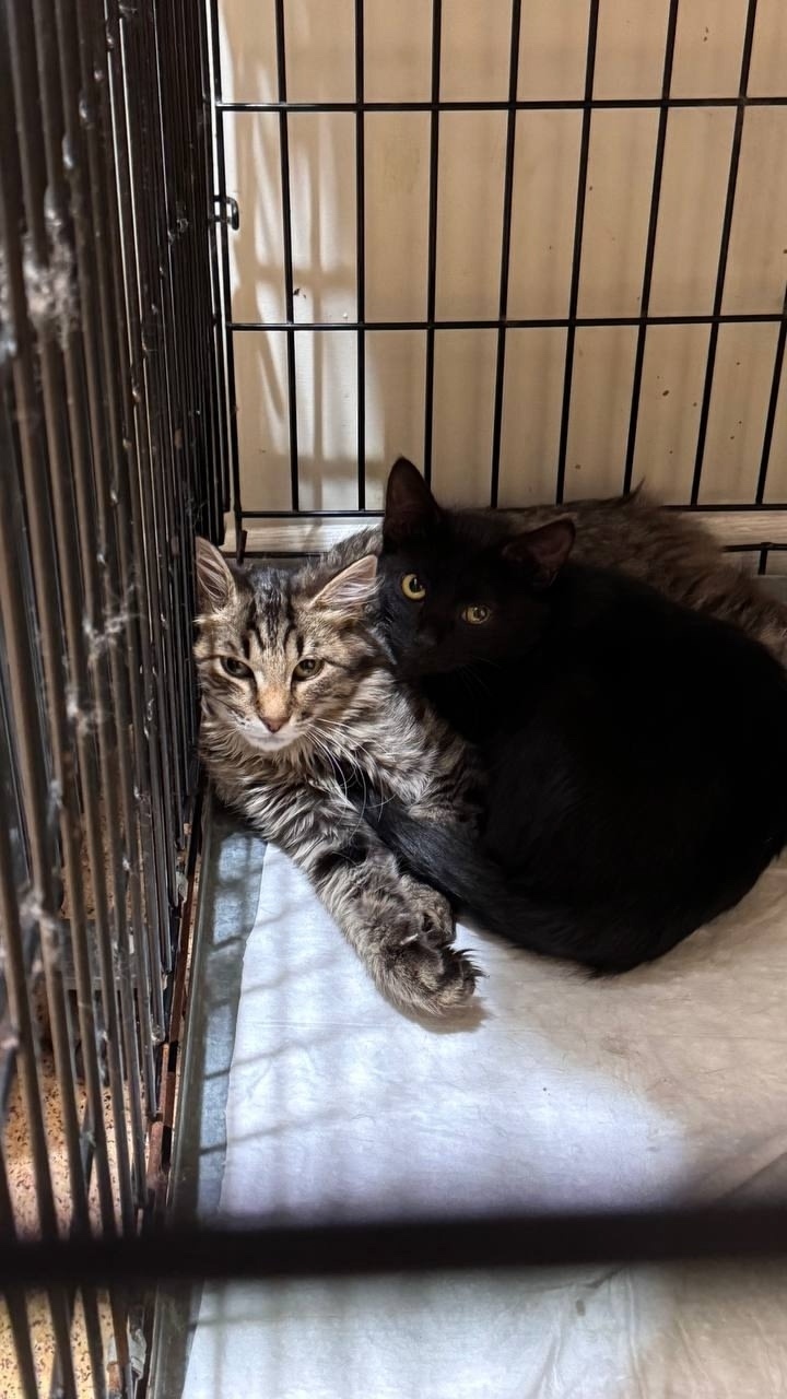 Две другие: черная и полосатая - сестрички, пока пугливые, им нужно немного больше времени для адаптации. Им пролечены глазки, сейчас обрабатываются и по плану вакцинация.