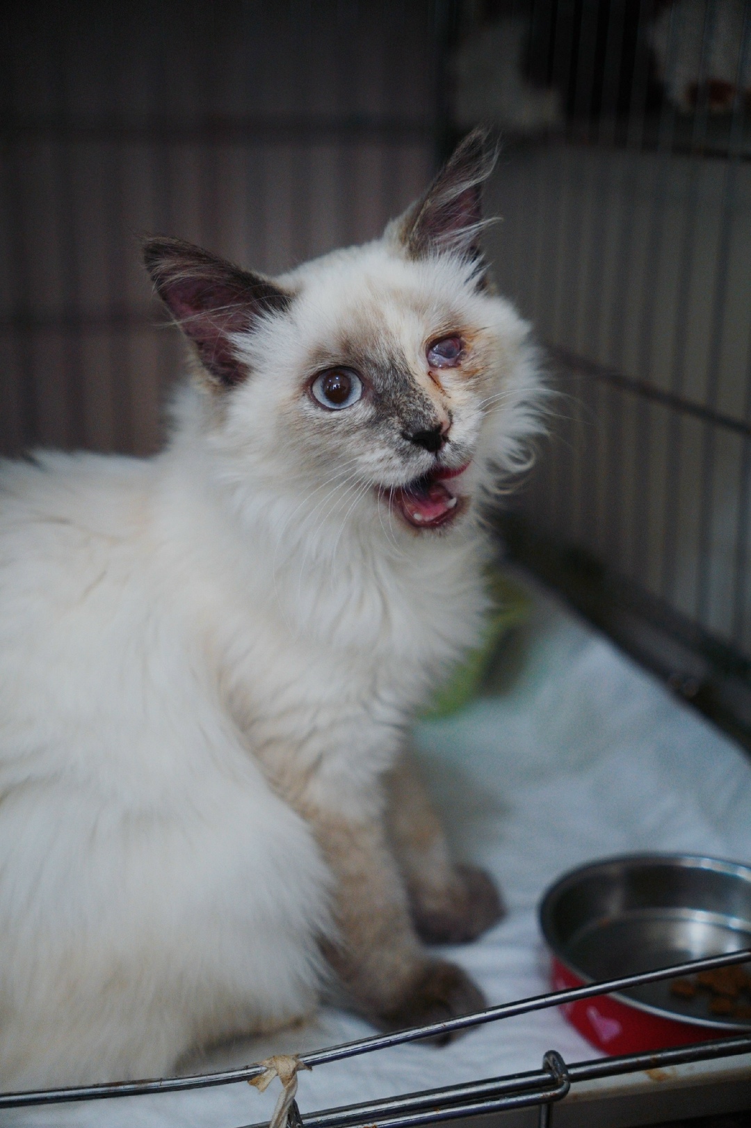 Беляночка с деформированным глазиком очень ласковая и контактная, проходит лечение.
